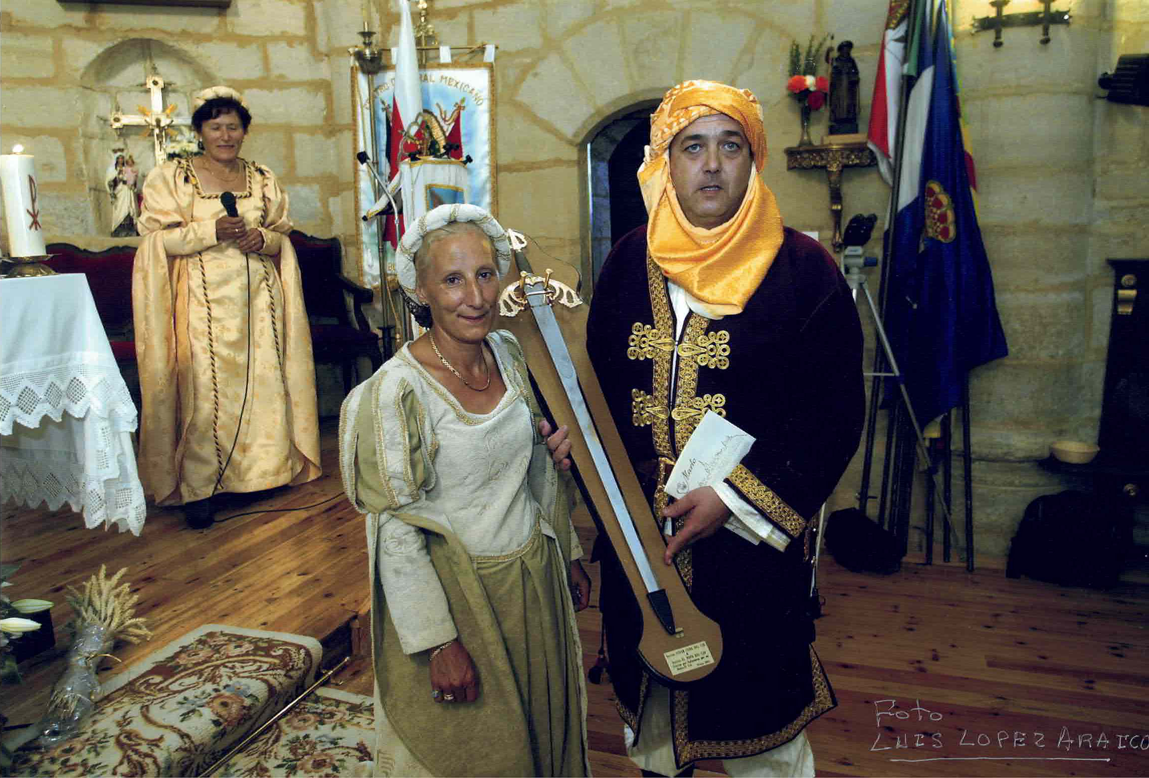 Presidenta Asociación Mujeres Rurales, por el sacrificio, dedicación y ante todo, cuidado y mucho esmero en la confección de los magníficos atuendos medievales que tanta orgullo y vistosidad aportan a nuestra asociación recogió la Tizona aquel año 2005.